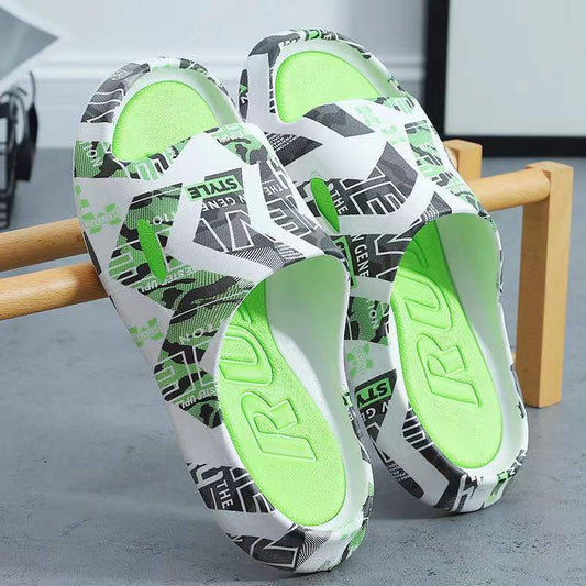 Summer Men's Open Toe One Word Casual Slippers Thick Bottom Anti-Skid Wear-Resistant Fashion Printed Beach Slippers Home Slipper 夏季男士休閒厚底防滑沙灘拖鞋