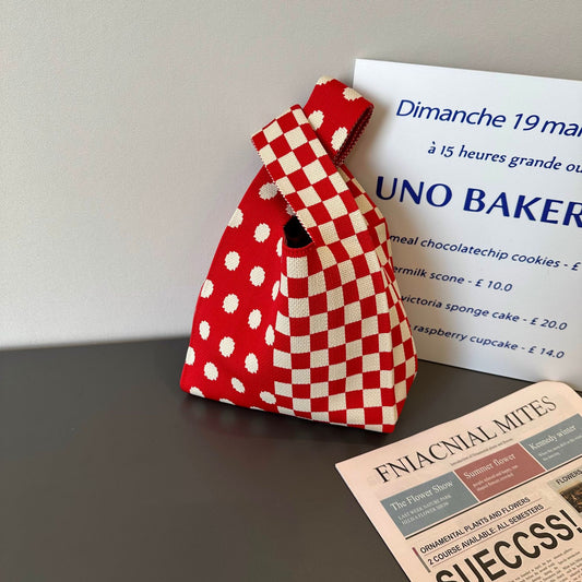 Korean Style Trendy Polka Dot And Stripe Knitted Handbag One Shoulder Bag 韓版潮流波點條紋針織單肩手提包