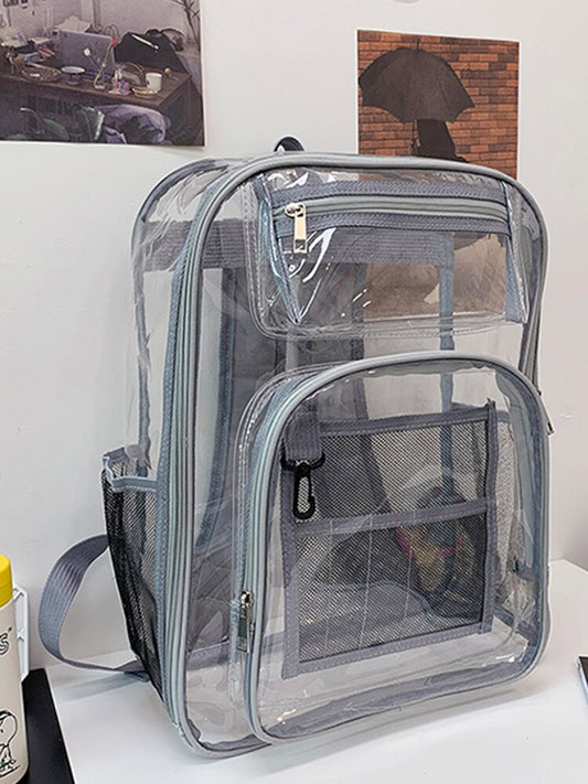 Backpack Waterproof Transparent School Bag Girl Large Capacity Backpack Solid Clear Backpack Men Fashion Transparent Plastic Bag 時尚防水透明塑料背包