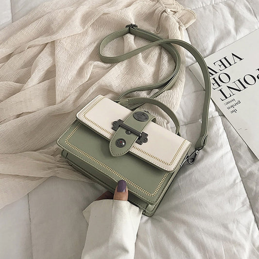 Fashion chain lady Sling bag Panelled color PU Leather Crossbody Bag For Women 2022 new Wide strap Shoulder Messenger Bag Ladies 時尚皮革鏈條寬肩單肩包