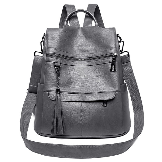 New Women Backpacks Soft Leather Fashion Casual Tassel Bags Female Shoulder Bag Large Capacity School Backpack for Teenage Girls