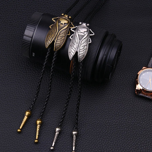 Fashion Metal Cicada Retro Bolo Tie for Men Necklace Pendant Leather Rope Necktie Shirt Collar Bowtie Accessories Cowboy Jewelry