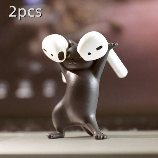 Dancing Cat Earphone Stand For AirPods 1 2 Pro Bluetooth Headphones Holder Cute Doll Handmade Decoration Pen Holder Desk Decor 可愛跳舞貓AirPods 1 2 Pro 藍牙耳機支架及裝飾筆架