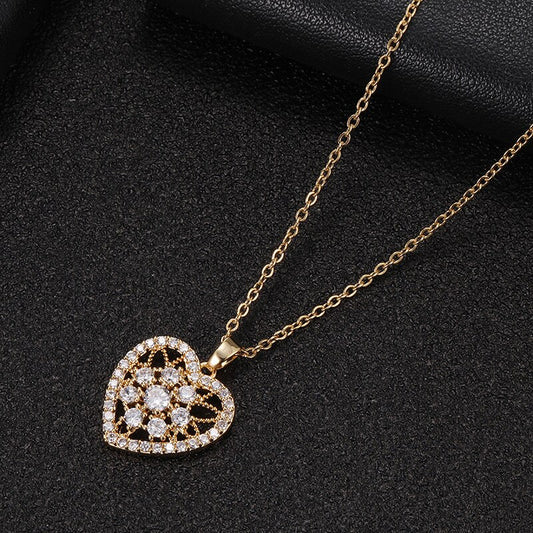 Top Quality Cat Eye Stone Heart Necklace Women Cubic Zirconia Pendants Necklaces Accessory