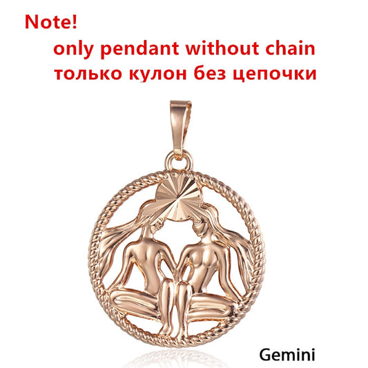 Zodiac Sign 12 Constellation Pendant Necklace 585 Rose Gold Color Horoscope Necklace Mens Chain Gift Fashion Jewelry GPM21 時尚12星座玫瑰金吊墜