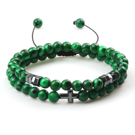 2pcs/set Obsidian Stone Bracelet Men Black Lava Hematite Cross Beads Bangle Women Charm Natural Stone Paryer Jewelry Pulseras