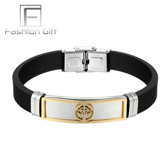 Tree Of Life Bracelets Summer Washable Rubber Bangles Women Men Wrist Jewelry Black Silicone Belt Stainless Steel Cuff Accessory 生命之樹黑色矽膠帶不銹鋼手鍊