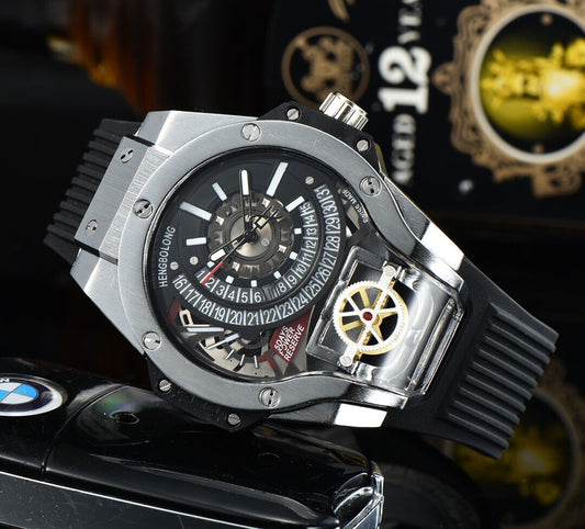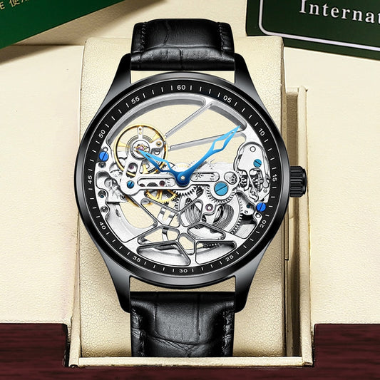Men's Sports Watch Hollow Machinery Top Brand Men's Leather Watch Trend Luminous Waterproof 2020 New 雕刻機芯雙面運動型手錶