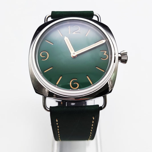 Manual Mechanical 45mm Green No Logo Dial Leather Men's Watch 男士皮革綠色45毫米無徽標錶盤手動機械表