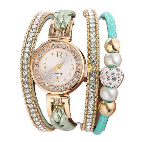 Women Rhinestone Bead Round Dial Snap Button Multi Layer Bracelet Quartz Watch Creative Fashion Steampunk Roman Watch мужские