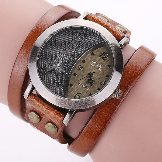 Vintage Tower Watch Two Loops Genuine Leather Bracelet Watches Casual Women Quartz Wristwatches Relogio Feminino Ladies Clock's