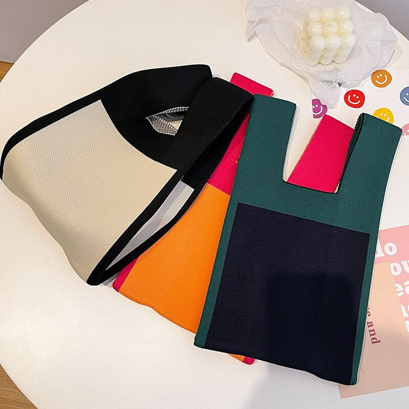 1Pcs/Lot 20*35cm 3 Styles New Japanese Knitting HandBag 2022 Best Selling Fashion Splicing Contrast Color Bag 時尚日系拼接撞色針織手提包
