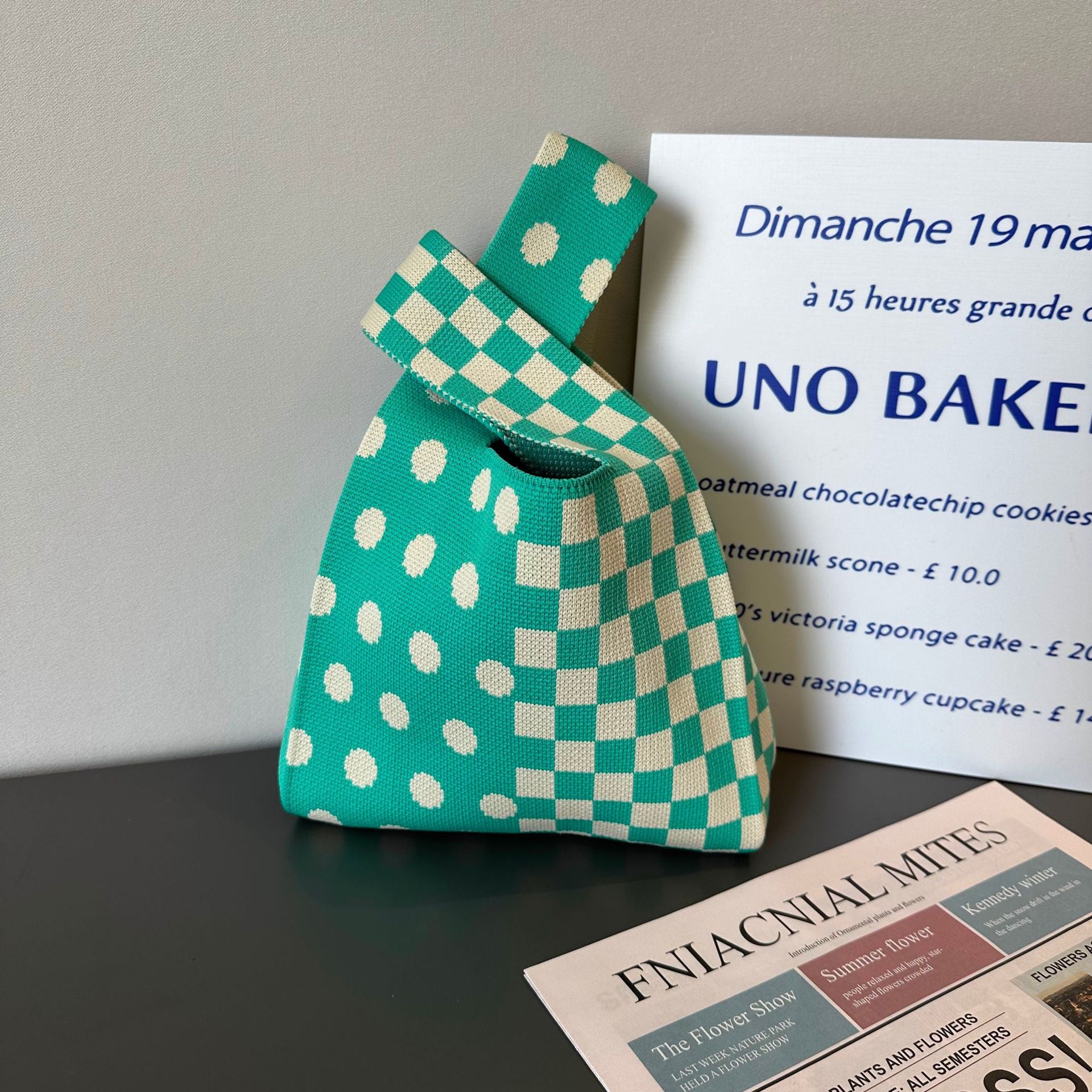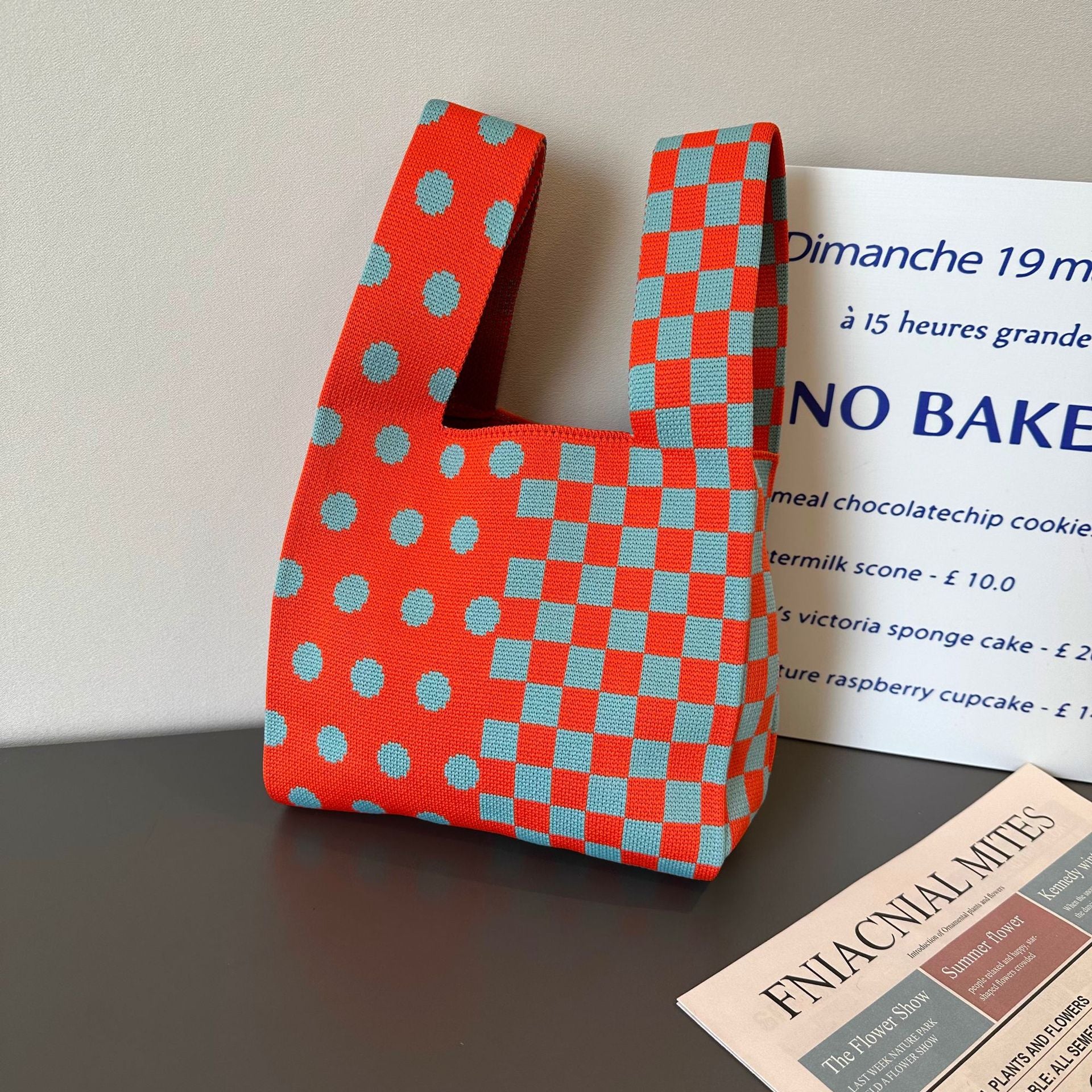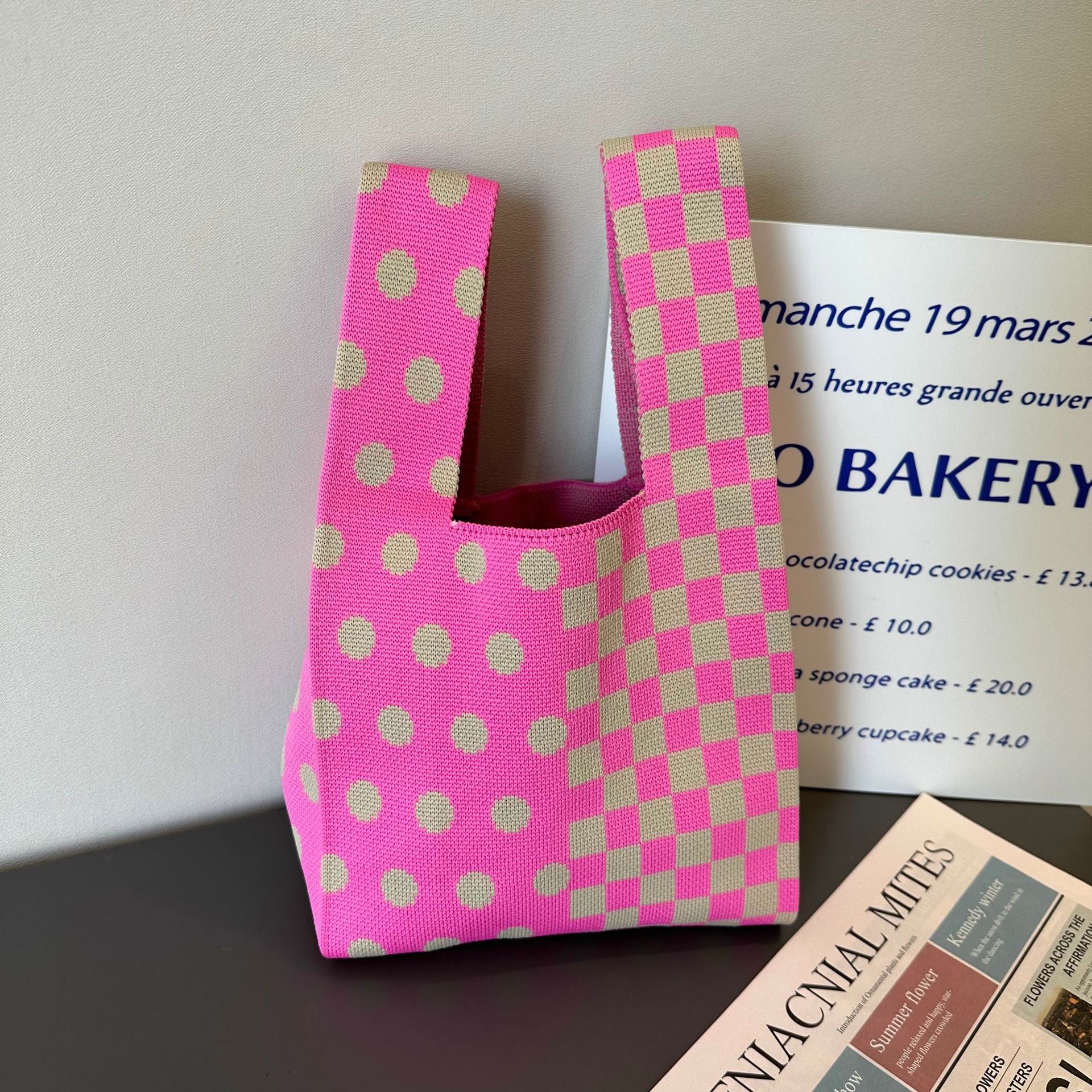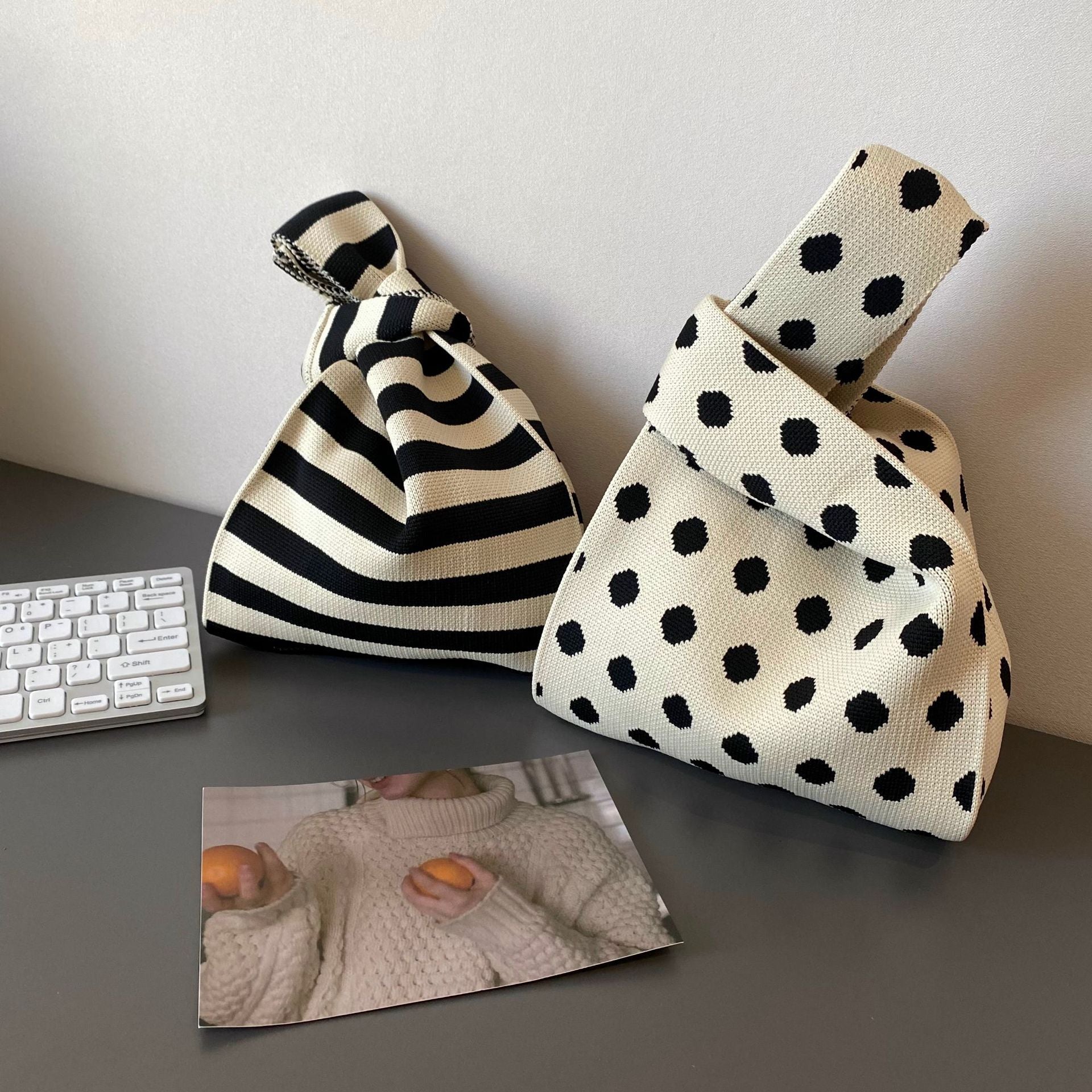 Korean Style Trendy Polka Dot And Stripe Knitted Handbag One Shoulder Bag 韓版潮流波點條紋針織單肩手提包