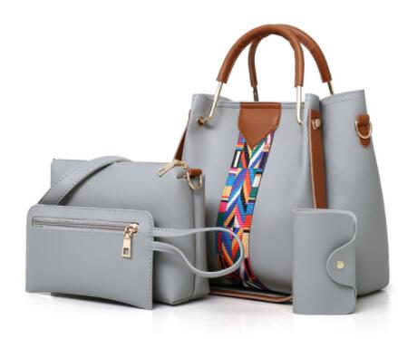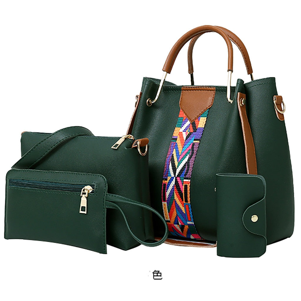 Handbags Fashion Bags for Women 2021 New Elegant 4Pcs Women Printing Retro Pattern Handbag Shoulder Bag+Card Package 復古圖案手提單肩包+卡包四件裝